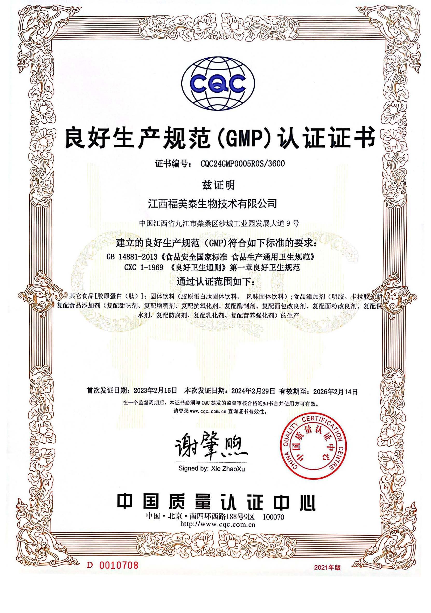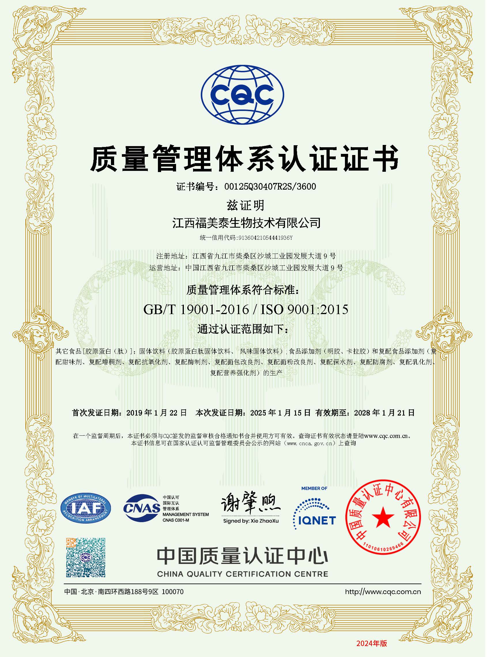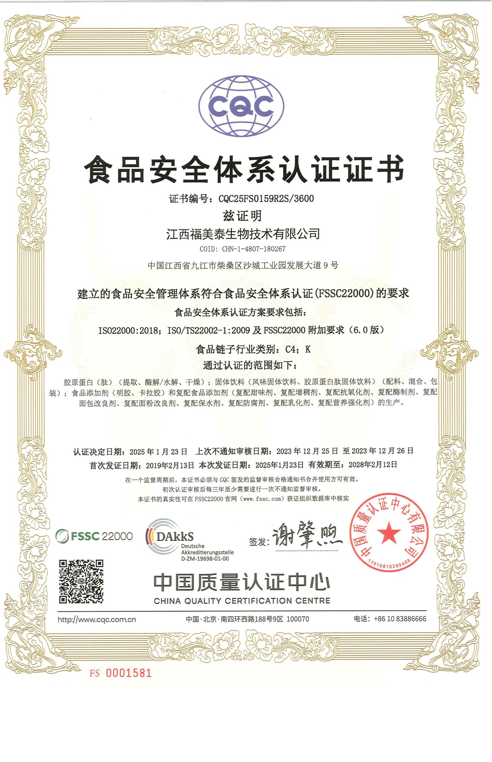 食品管理体系证书