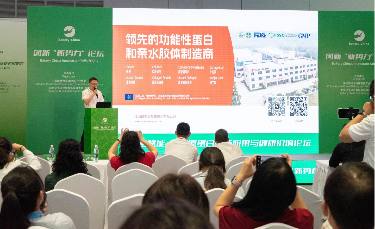 在刚刚落幕的第二十七届中国国际焙烤展上,“胶原蛋白创新应用与健康价值”论坛引发热议!作为论坛核心分享嘉宾,江西福美泰生物技术有限公司以“胶原蛋白的趣味变身”为主题,深度解析了胶原蛋白及其衍生物-速溶明胶与胶原蛋白肽在烘焙领域的革新应用。今天,本文将带您全景复盘这场技术盛宴,揭秘福美泰生物如何用科技与健康赋能烘焙未来!