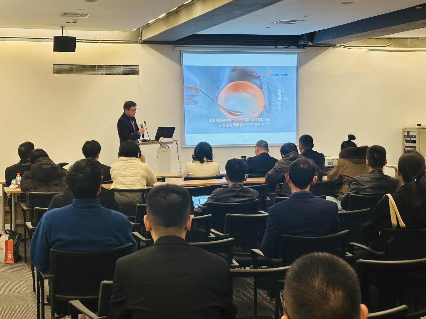 3月18日下午,福美泰生物在M503会议室举办了速溶明胶新品发布会“功能蛋白(速溶明胶)的创新应用”。我司研发工程师首次公开福美泰速溶明胶“常温即溶”工艺技术,突破传统明胶溶解慢、操作复杂的痛点,为食品生产提供高效解决方案。